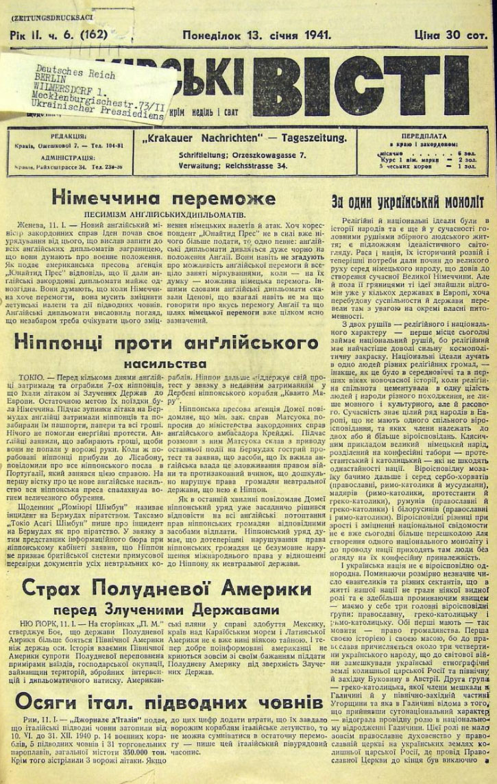 – не все, що вміщувалося в німецьких офіційних газетах, можна було передруковувати в українських, що виходили в Генеральній Губернії.