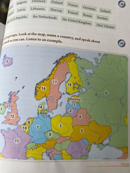 До правління КУЕ надійшла інформація від батьків, які є членами української громади, про прикрий випадок, який стосується системи шкільної освіти Естонії: в підручнику англійської мови для 7 класу естонських шкіл розміщена мапа Європи, де Крим показаний частиною території Російської Федерації.