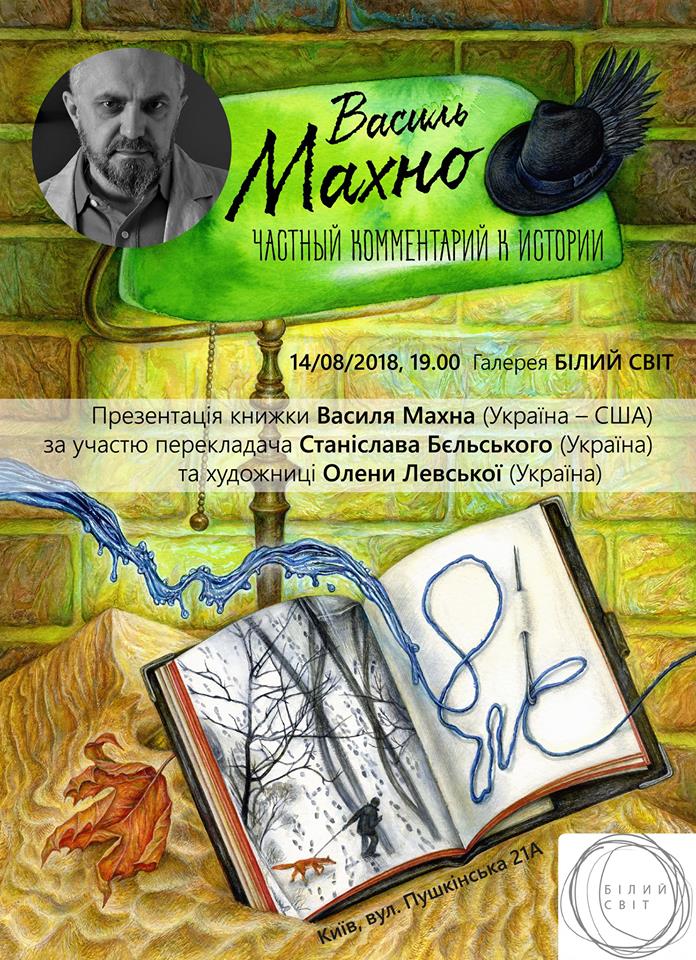 Презентація книжки Василя Махна «Приватний коментар до історії/Частный комментарий к истории» (Дніпро: Герда, 2018) відбудеться 14 серпня о 19:00 в Ґалереї БІЛИЙ СВІТ (вул. Пушкінська, 21-А).