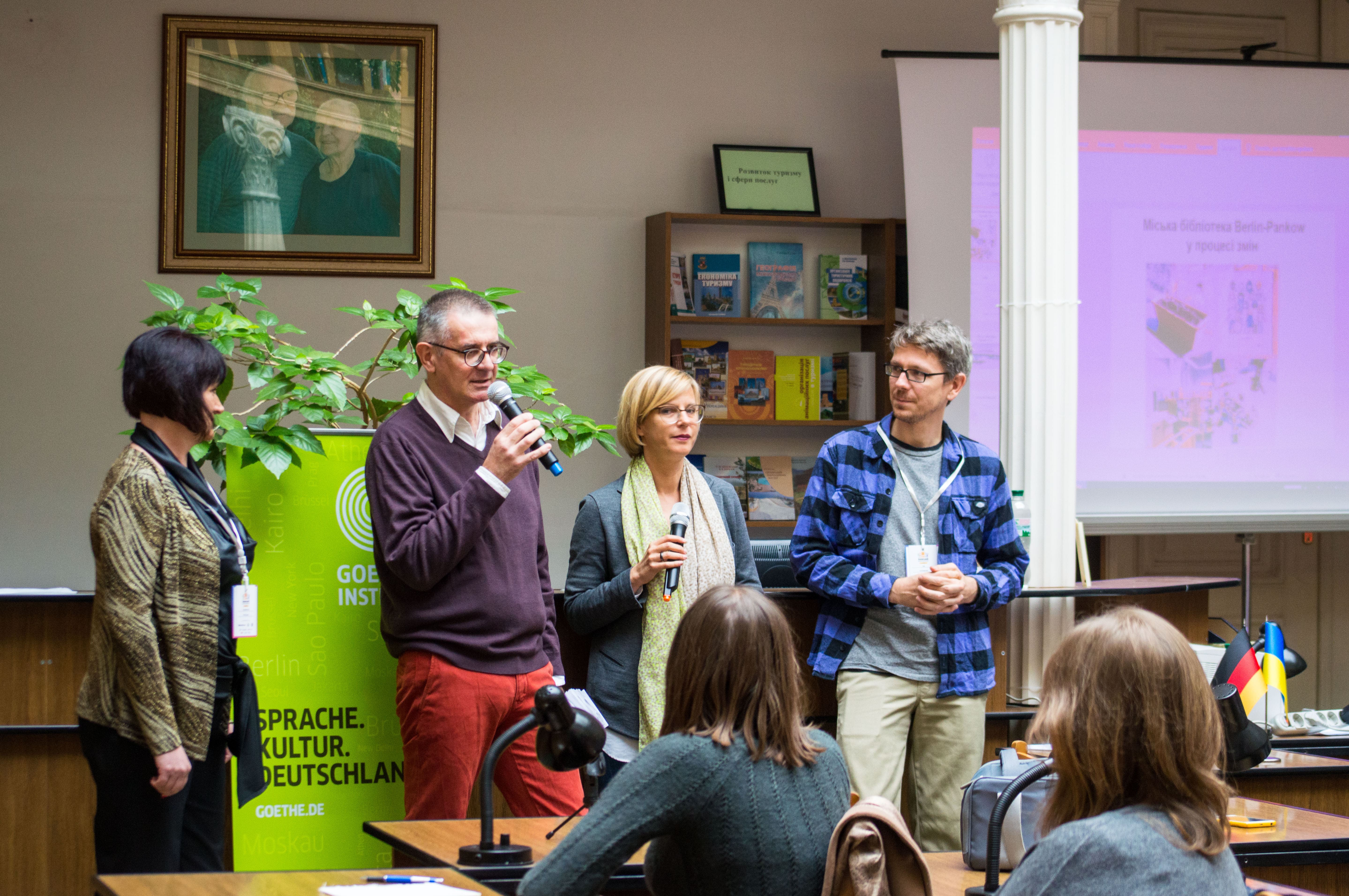 Бібліотека в Берлін-Панков є районною та має вісім філій. Кожна з них — зі своєю функцією, планом подій та «родзинкою». Наприклад, в одній з них є окремий community building-відділ, який займається комунікаціями місцевих жителів. Там є кілька проєктів. Перший: «Ділитися знаннями» – діти й молодь спільно працюють над створенням Берлінської міської історії. Вони на вулицях розпитують мешканців Берліна різного віку про їх життя та враження.