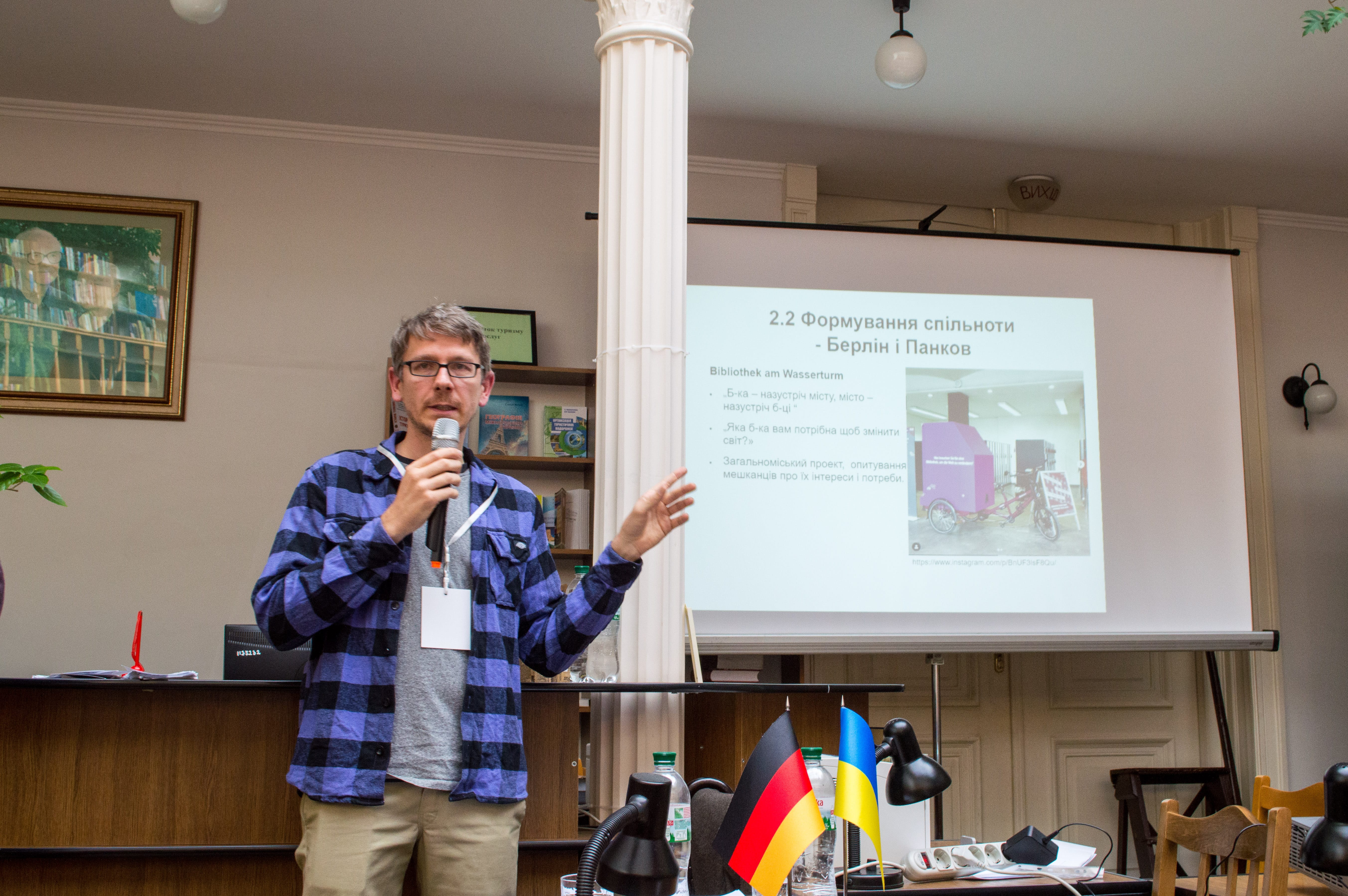 Бібліотеки в Європі набувають нових функцій. Бібліотекарі свідомо скорочують фонди та вивільняють простір для заходів і подій. Наразі головою їхньою функцією стало формування спільноти, «живі» знайомства та неформальна освіта. Тут облаштовують робітню з інструментами, музичний куток для створення електронної музики, простір для креативу або пасіку. Але не десь в паралельному вимірі, а в сьогоденні Берлінської бібліотеки. Про зміни, які відбуваються в бібліотеці Берлін-Панков розказав Тім Шуманн, резидент Гете Інституту, директор міської бібліотеки Генріха Белля в Панкові.