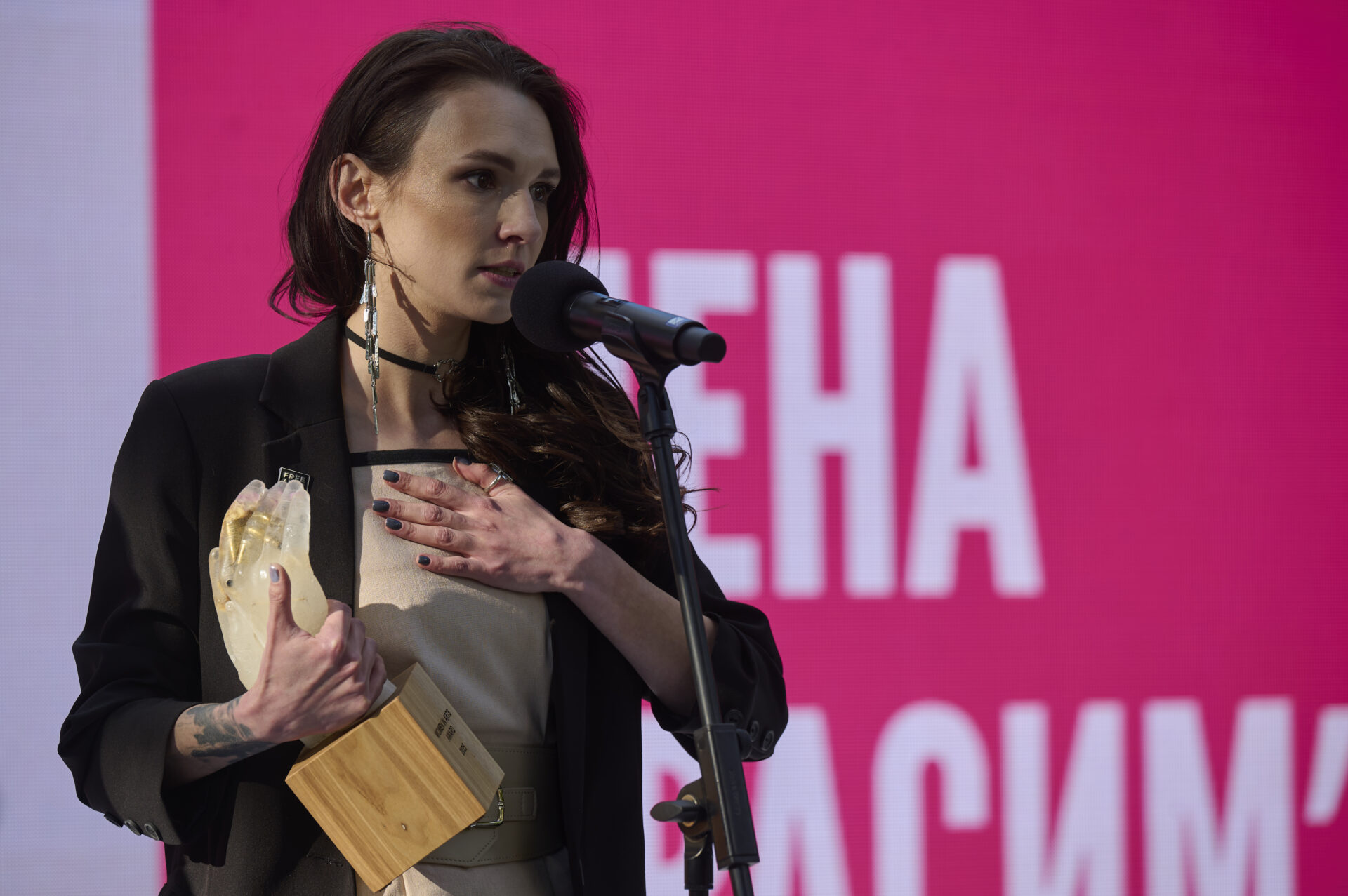 «Для мене велика радість і честь вже вп’яте бути кураторкою премії Women in Arts. Це наше велике досягнення і цінність, що коло солідарності та підтримки, яке ми створюємо, зростає і міцнішає. Зараз, коли ми проживаємо багато втрат і важких досвідів, сестринство стає міцною опорою», — зауважила Тетяна Філевська, креативна директорка Українського інституту та кураторка премії Women in Arts.