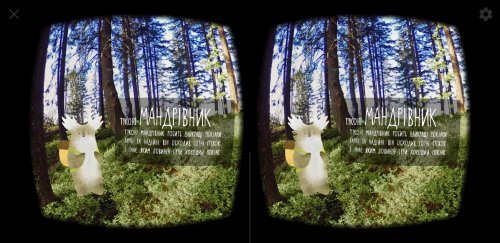 У додатку можна познайомитися з ними ближче. Адже одягнувши VR-окуляри, ви потрапляєте у їхній магічний світ, опиняючись то серед карпатського хвойного лісу, то на заквітчаних гірських галявинах. Там ви поглядом шукаєте одного з персонажів, який потім виходить прямісінько до вас. Кожна локація була ретельно підібрана командою для зйомки відео 360°, завдяки чому є відчуття справжнього занурення в історію», — розказують творці проєкту.