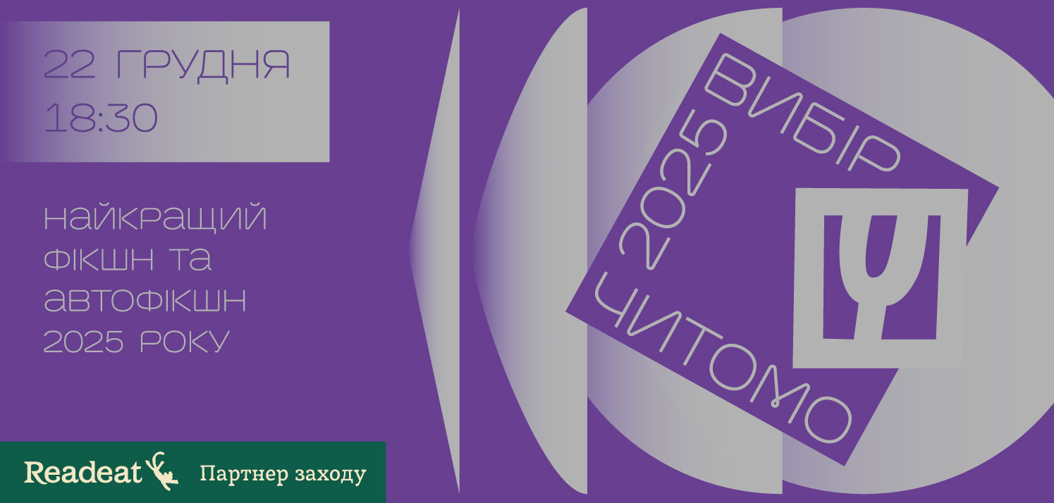 22 грудня в Києві літературні критики оголосять найкращі книжки української прози за 2025 рік – фікшн та автофікшн. Подія відбудеться в книгарні Readeat, яка виступає партнером заходу.