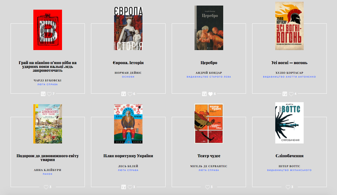 За улюблені видання можна проголосувати. Книжкові новинки, які отримали найбільшу кількість голосів, потрапляють у розділ «Найбільше чекають».