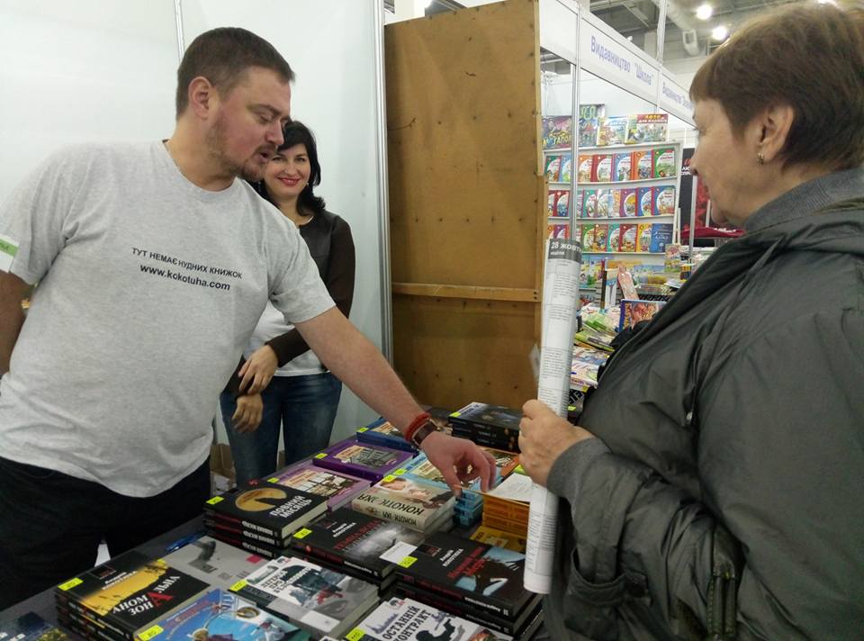 А прозаїк Андрій Кокотюха приїхав у Запоріжжя залізницею, ґрунтовно, на всі три дні. Він мав окремий стенд, на якому продавалися тільки книжки Андрія Кокотюхи – приблизно 65 назв. І звісно, не тільки не загримований, але й у фірмовій футболці з адресою сайту своєї книгарні www.kokotuha.com, щоб точно ні з ким не сплутали.