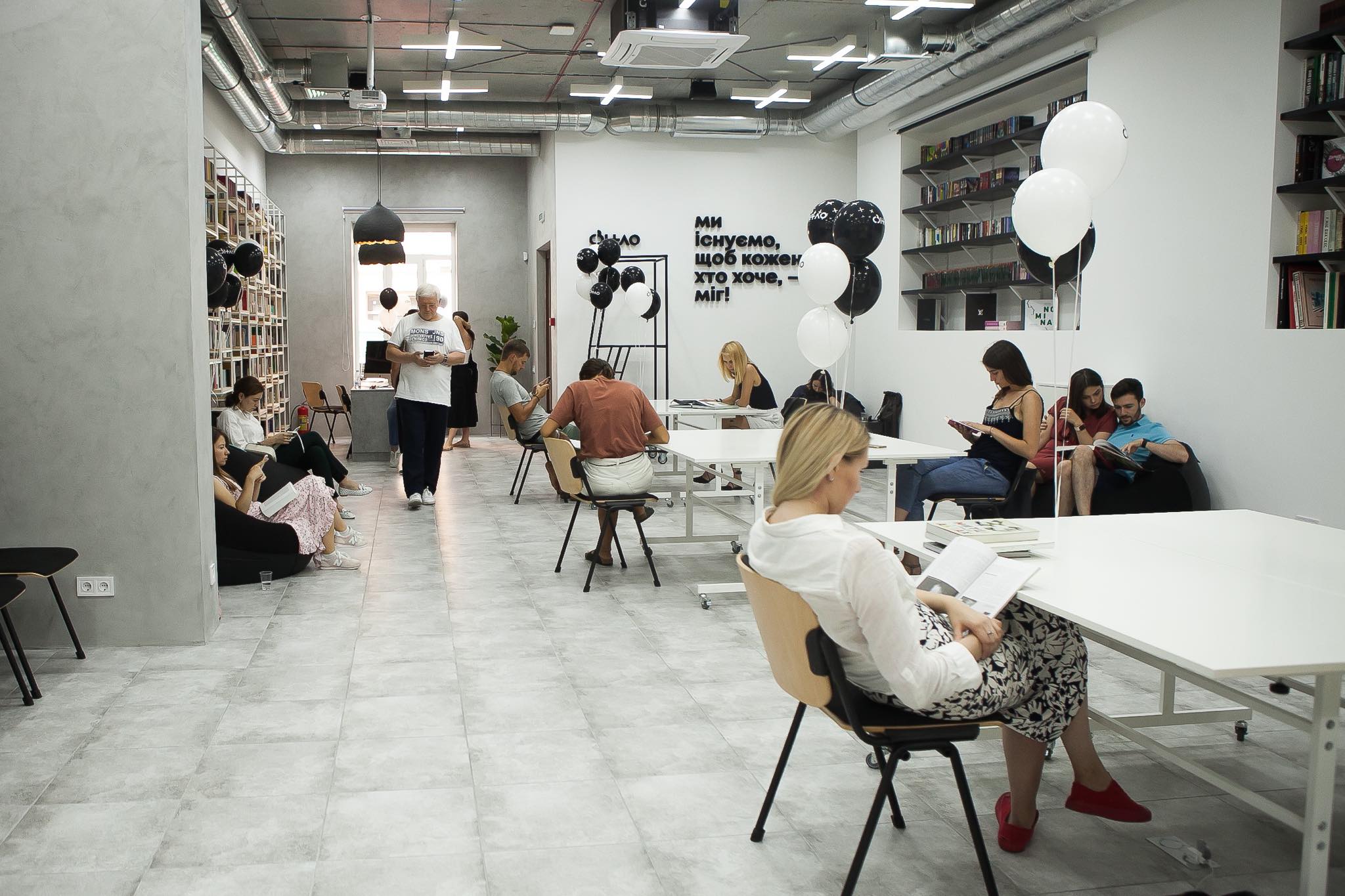 Інтер’єр бібліотеки розробила компанія Sergey Makhno Architects. Вони об’єднали два приміщення, які орендували власники, перетворивши їх на кілька зон. Основна частина містить саму бібліотеку, читальний зал і майданчик, на якому проходитимуть події та лекції. Зала обладнана трьома проєкторами, а також якісною системою вентиляції. За словами засновників, вхід до бібліотеки та користування книжками будуть безкоштовними та вільними, але в окремі дні простір можуть закривати для певних заходів.