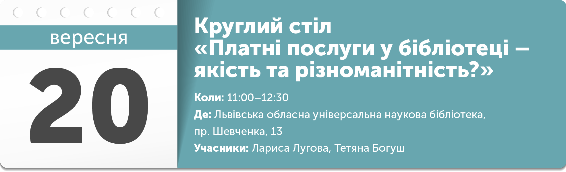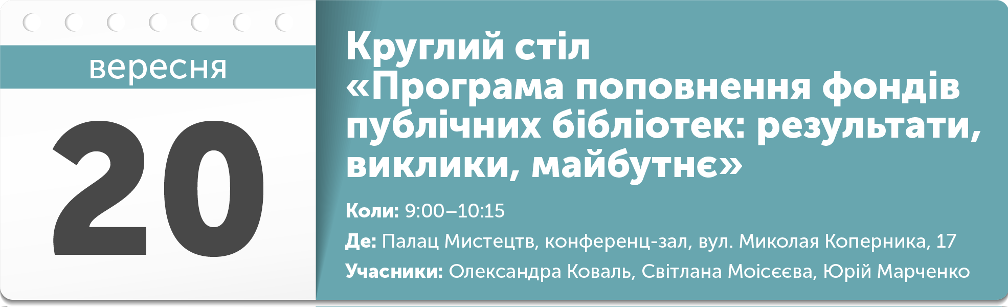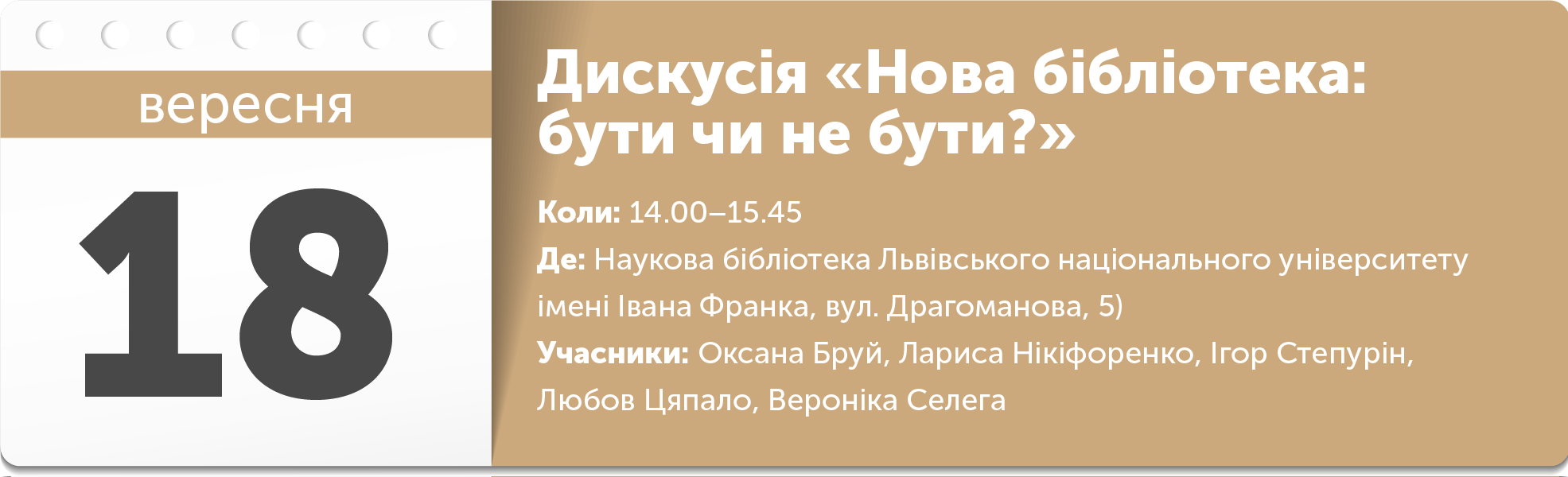 Якою бути новій бібліотеці? Чи відмовитися від століттями напрацьованих традицій і цінностей? Чи перетворитись на інфомедіахаб? Чи залишитись бібліотекою із тишею (і пусткою) читальних залів? Бібліотечні кафе, коворкінги, соціальні мережі та бібліотеки – хто сьогодні є/може бути ефективними стейкхолдерами промоції читання в Україні та як їм взаємодіяти? Що не так із сучасною бібліотекою і хто допоможе бібліотеці стати новою і потрібною? Про це і будуть дискутувати.