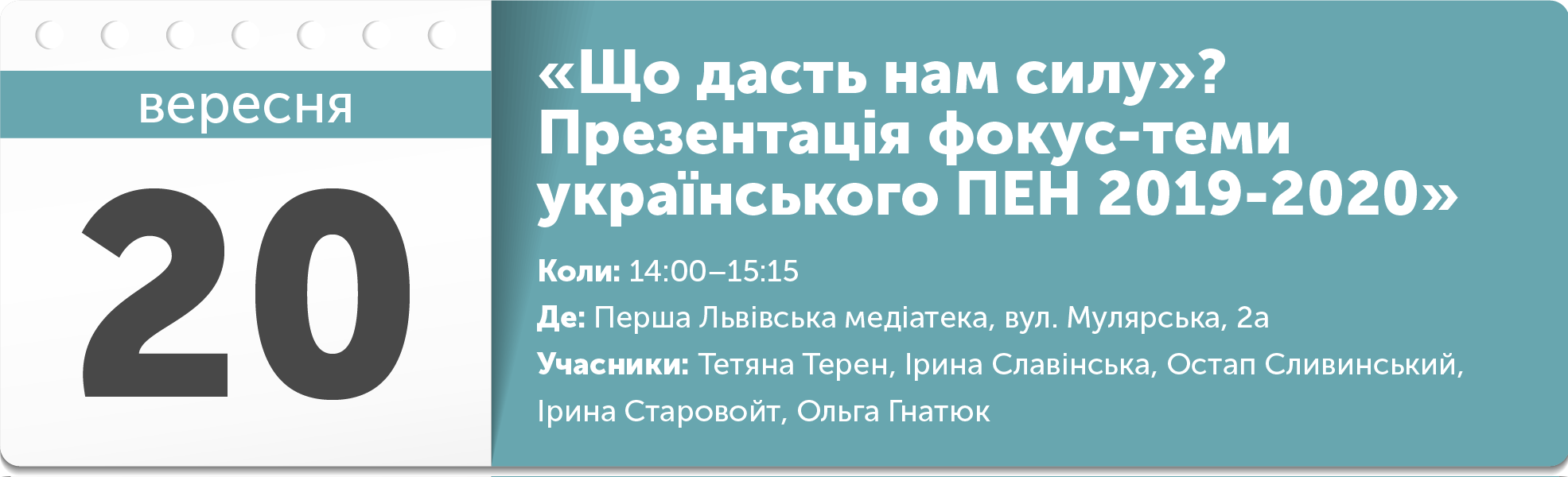 «Що дасть нам силу?» — саме ця цитата з Лесі України стане головною фокусною темою ПЕН у 2019–2020 роках. Разом із нашими авторами та експертами протягом року ми хочемо порозмірковувати про те, у чому полягає сила українців і де її черпати в моменти безсилля. Про силу слабких і слабкість сильних. А також про те, чим сила відрізняється від насилля.